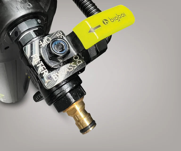 The 2nd filter is a deionised resin that will filter the water to 0PPM (parts per million). With a built-in digital TDS metre that will read the incoming and outgoing levels so you know the purity of your water at all times. The newly developed bypass valve allow the user to simply choose if they want to use the filter system for the complete wash cycle or just during the final rinse cycle to prolong the cartridges life span. You may choose to use the system during a complete wash cycle to see better foaming and a superior wash with deionised water. The choice is yours, at the turn of a valve.