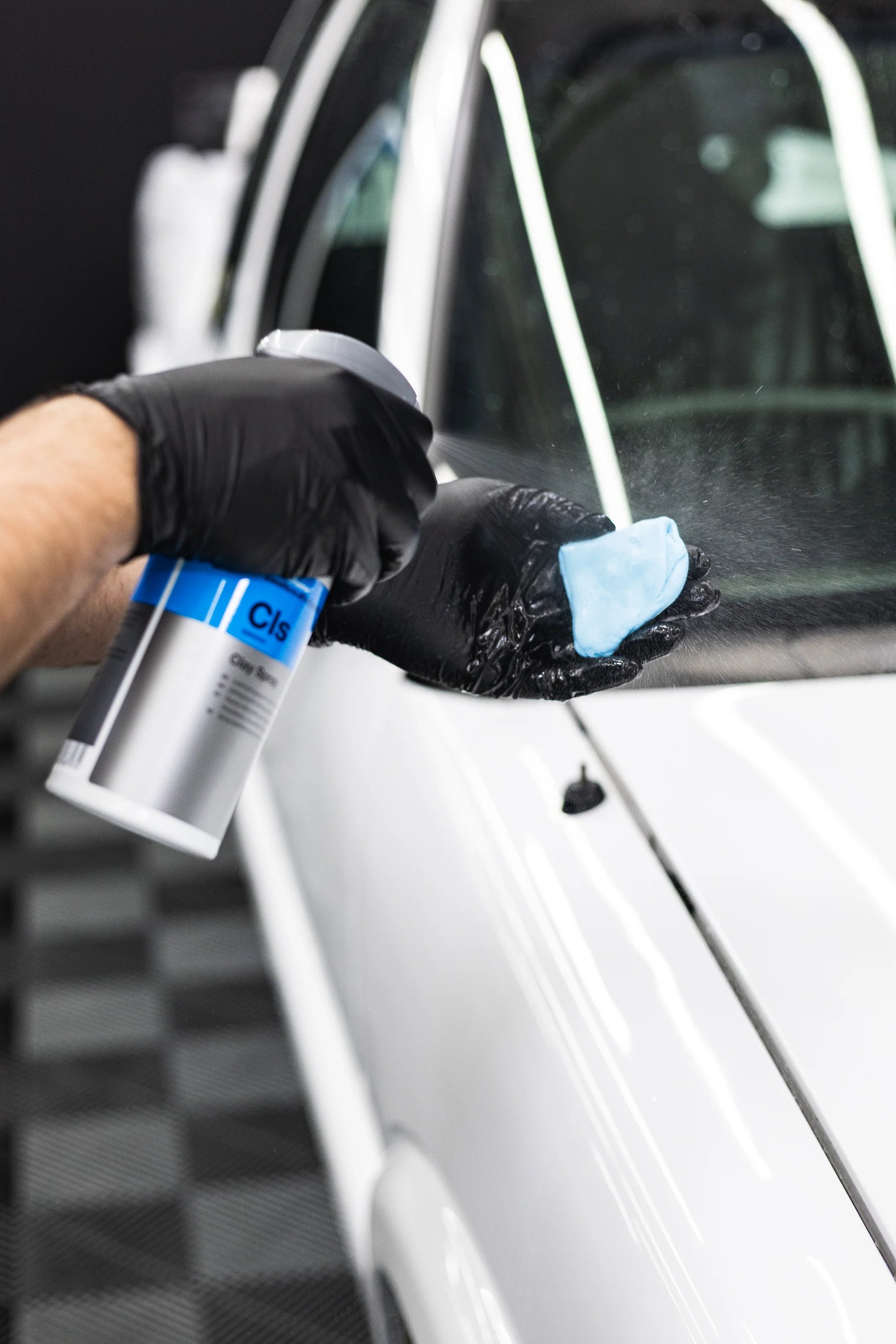 - Spray P & S Paint Gloss or McKee’s 37 N-914 (8ml per Litre of Water) on a small section of the vehicle. (Alternatively, you can use your own preferred clay lubricant)