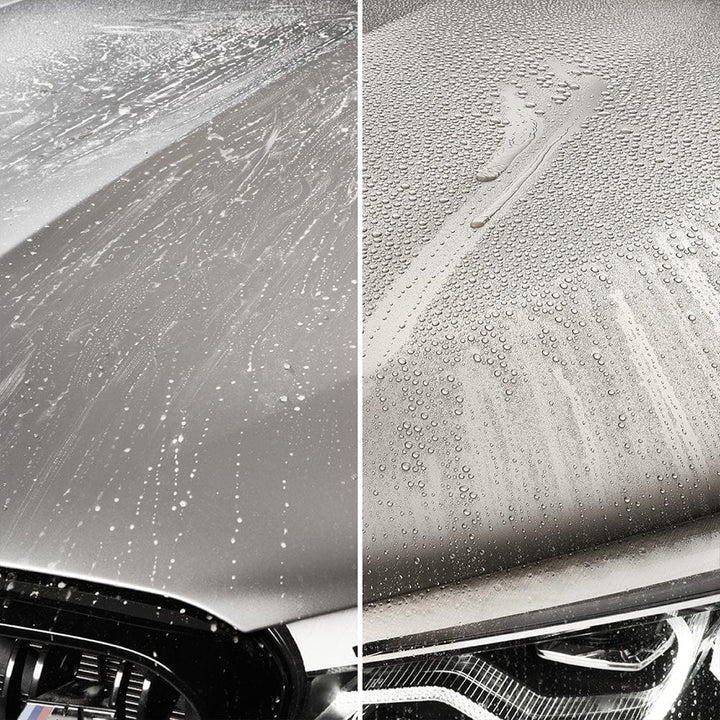 - Enhanced Hydrophobic Effect: Boosts the water beading and sheeting properties of existing ceramic coatings, ensuring water and dirt slide off easily.